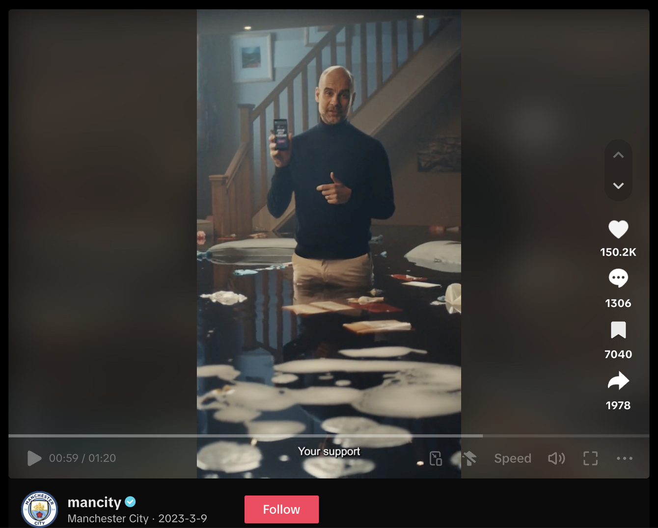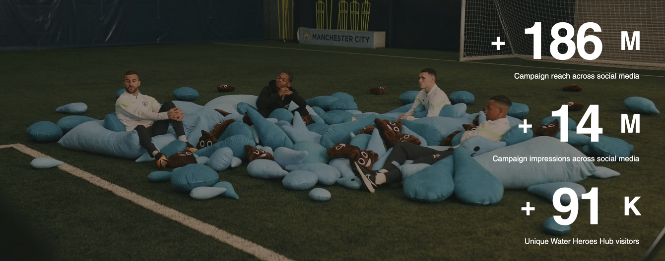 We see water pollution on our screens, but do nothing. So what if it was on our own doorstep? Or living room, where Pep stresses to Man City fans the need to act and use those same screens to drive action by signing a petition.