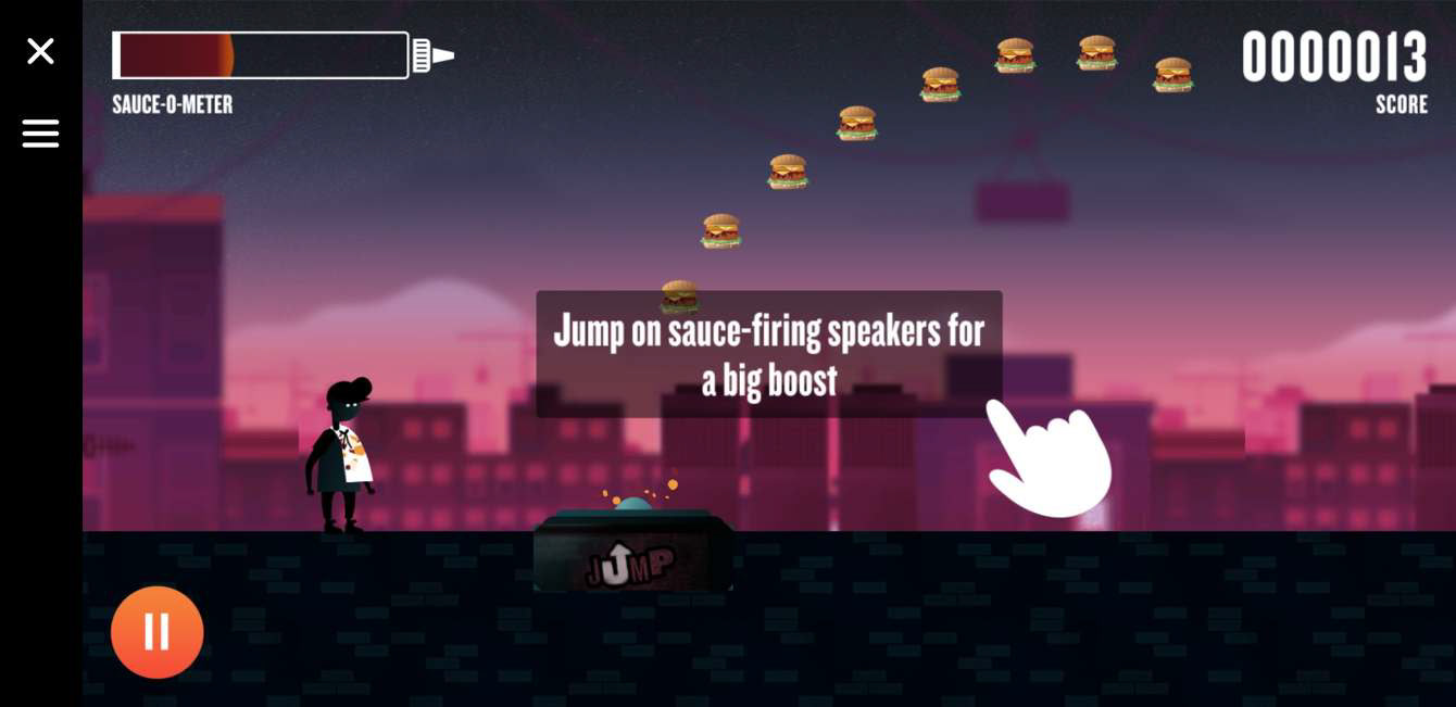 We knew our target audience loved gaming, particularly in social channels. So we created KFC's first and cheeky FB Messenger game that invited players to fly, jump over city rooftops and dive through absurd amounts of sauce. All to get their virtual bibs disastrously dirty and as many points as possible. They could then invite and challenge their mates within FB Messenger.