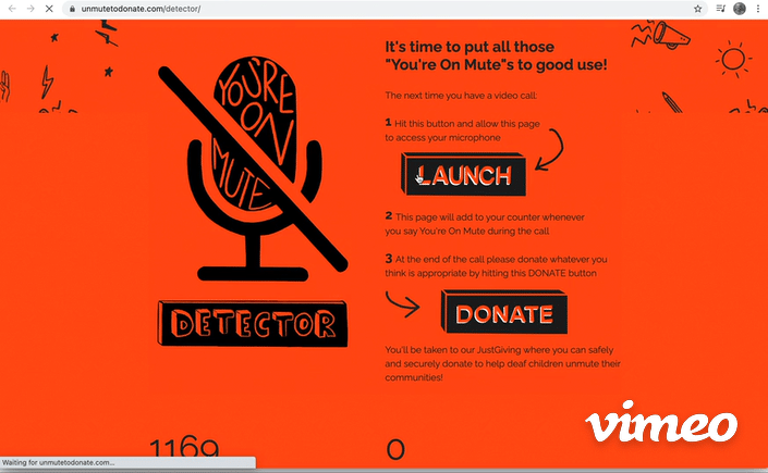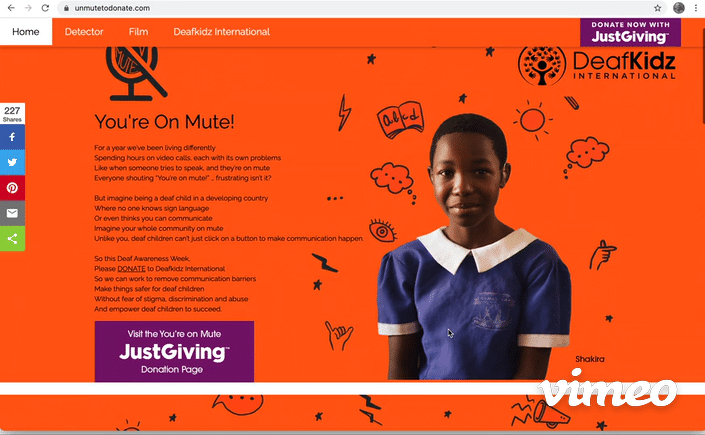 People were then directed to our site with a smart tech tool that detects when someone says "You're On Mute" on any video call, then prompts donations to DeafKidz.
